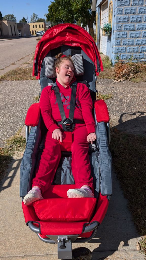 We used the Josi Stroller today. I can’t say enough how nice it is. It is so well balanced. We went a little farther than usual today and I chalk it up to using the Josi Stroller. It pushes way much, much easier than the wheelchair.